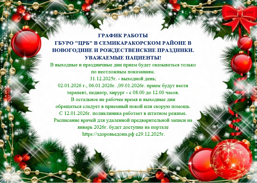 Записаться к врачам на прием вы можете через официальный сайт ГБУ РО «ЦРБ» в Семикаракорском районе, коллцентр, регистратуру и новый Региональный портал пациента Ростовской области «Здоровье Дона» https://здоровьедона.рф/